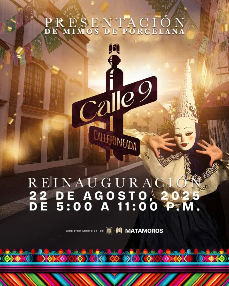 H. Matamoros, Tamaulipas.- El Gobierno Municipal de Matamoros, encabezado por Beto Granados, hace una cordial invitación a toda la ciudadanía para ser parte de un evento lleno de arte y tradición: la presentación especial de Mimos de Porcelana, que se llevará a cabo este viernes 22 de agosto como parte de la esperada reinauguración de la Callejoneada.