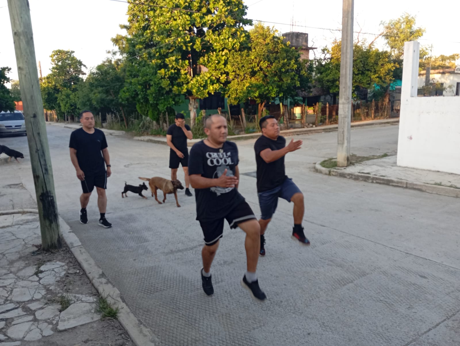Antiguo Morelos, Tamaulipas.- Personal de la Guardia Estatal en Antiguo Morelos lleva a cabo una jornada de acondicionamiento físico, como parte de las acciones para fortalecer el rendimiento operativo y la capacidad de respuesta en favor de la seguridad ciudadana.