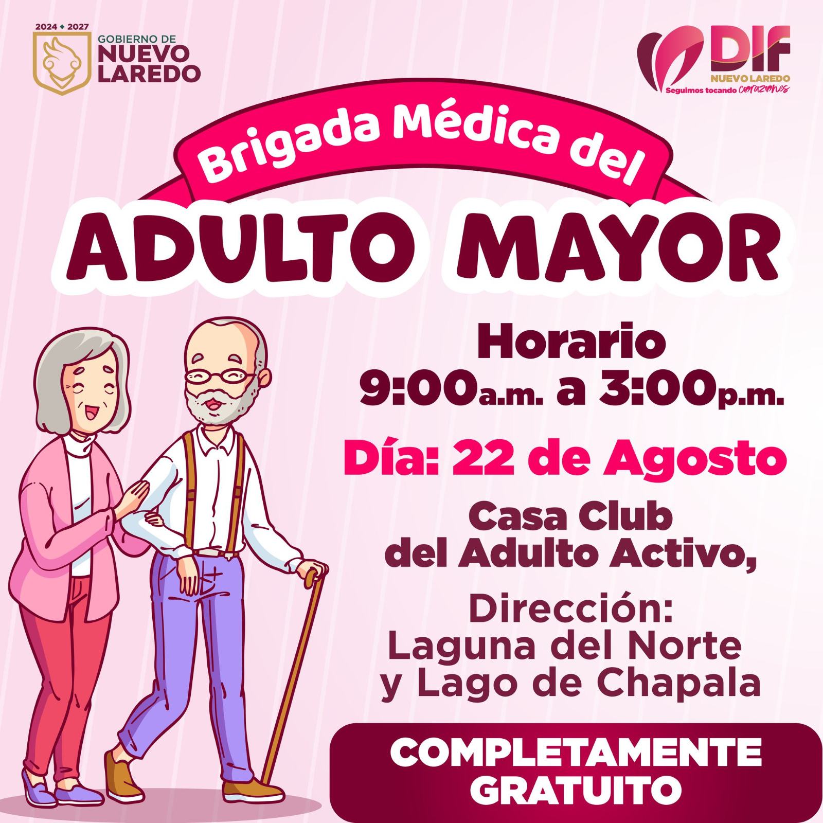 El Sistema DIF Nuevo Laredo invita a todas las personas mayores de 60 años a participar en la brigada de salud y servicios que se realizará mañana viernes 22 de agosto, en un horario de 9:00 de la mañana a 3:00 de la tarde, en la Casa Club del Adulto Mayor, ubicada en Laguna del Norte y Lago de Chapala.