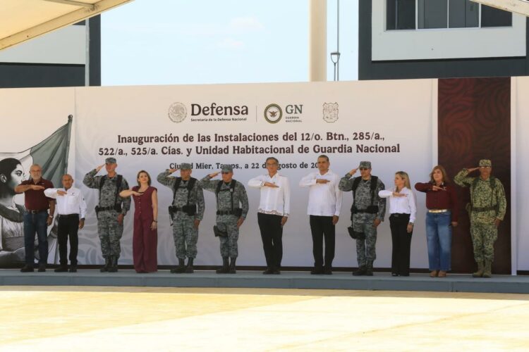 Ciudad Mier, Tamaulipas. – El gobernador Américo Villarreal Anaya, acompañado por el comandante de la Guardia Nacional, general Hernán Cortés Hernández, inauguró las instalaciones del 12° Batallón, tres compañías y una unidad habitacional de la Guardia Nacional en esta ciudad, a fin de fortalecer la capacidad institucional y reforzar la presencia de la corporación para brindar mayor seguridad a las y los tamaulipecos de esta región del estado.