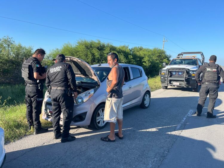 Matamoros, Tamaulipas.- Personal de la Guardia Estatal brindó apoyo a un conductor que quedó varado en el kilómetro 260 de la Carretera Federal número 101, a la altura del ejido El Moquetito.