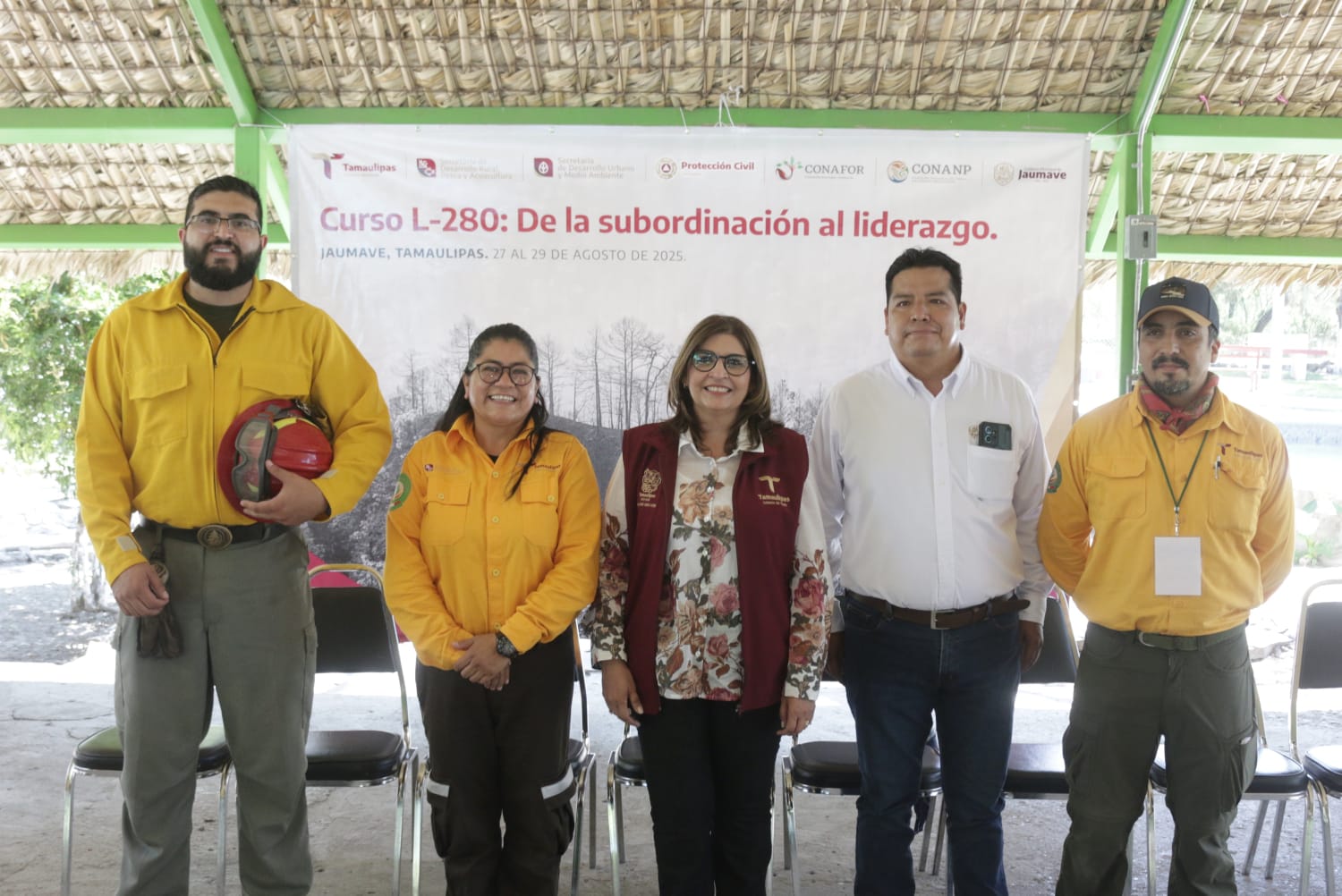 Jaumave, Tamaulipas.- Con el objetivo de fortalecer la capacidad de respuesta en situaciones de riesgo y garantizar mayor seguridad a la población y a la naturaleza, la Comisión Nacional Forestal (CONAFOR) impartió un curso de liderazgo a los combatientes de incendios forestales, en el que participaron brigadistas de la Secretaría de Desarrollo Urbano y Medio Ambiente (SEDUMA).