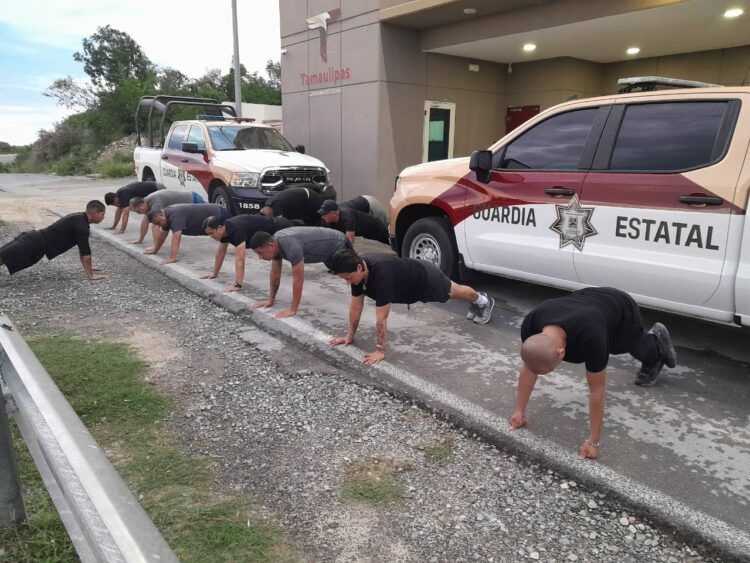 Abasolo, Tamaulipas.- En seguimiento a la instrucción de proporcionar a elementos de la Guardia Estatal un entrenamiento diario que permita mejorar su desempeño en el trabajo operativo, personal de Apoyo Carretero comisionado a la Estación Segura Soledad participa en el Programa de Acondicionamiento Físico de la Secretaría de Seguridad Pública de Tamaulipas (SSPT).