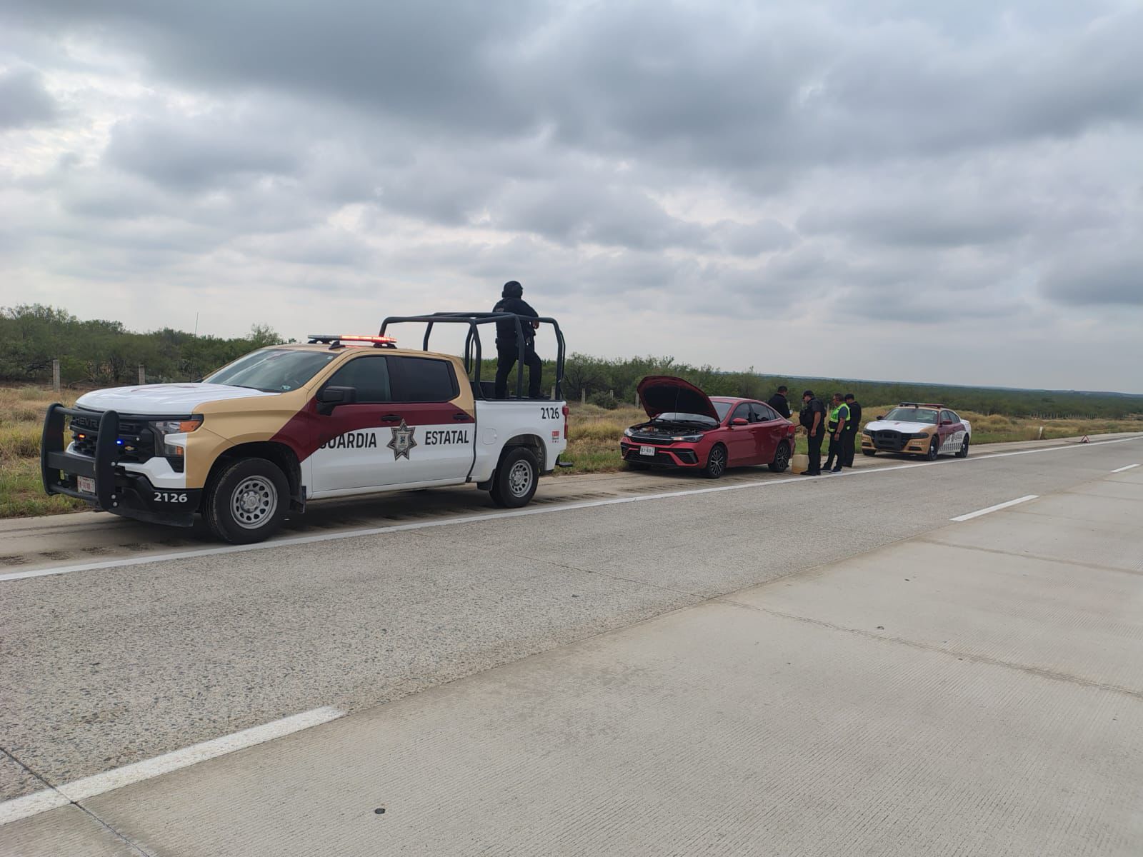 Nuevo Laredo, Tamaulipas.- Personal de la Guardia Estatal de Apoyo Carretero, brindó apoyo a un automovilista que quedó varado en la Carretera Federal 85, a la altura del kilómetro 188, tras quedarse sin combustible.