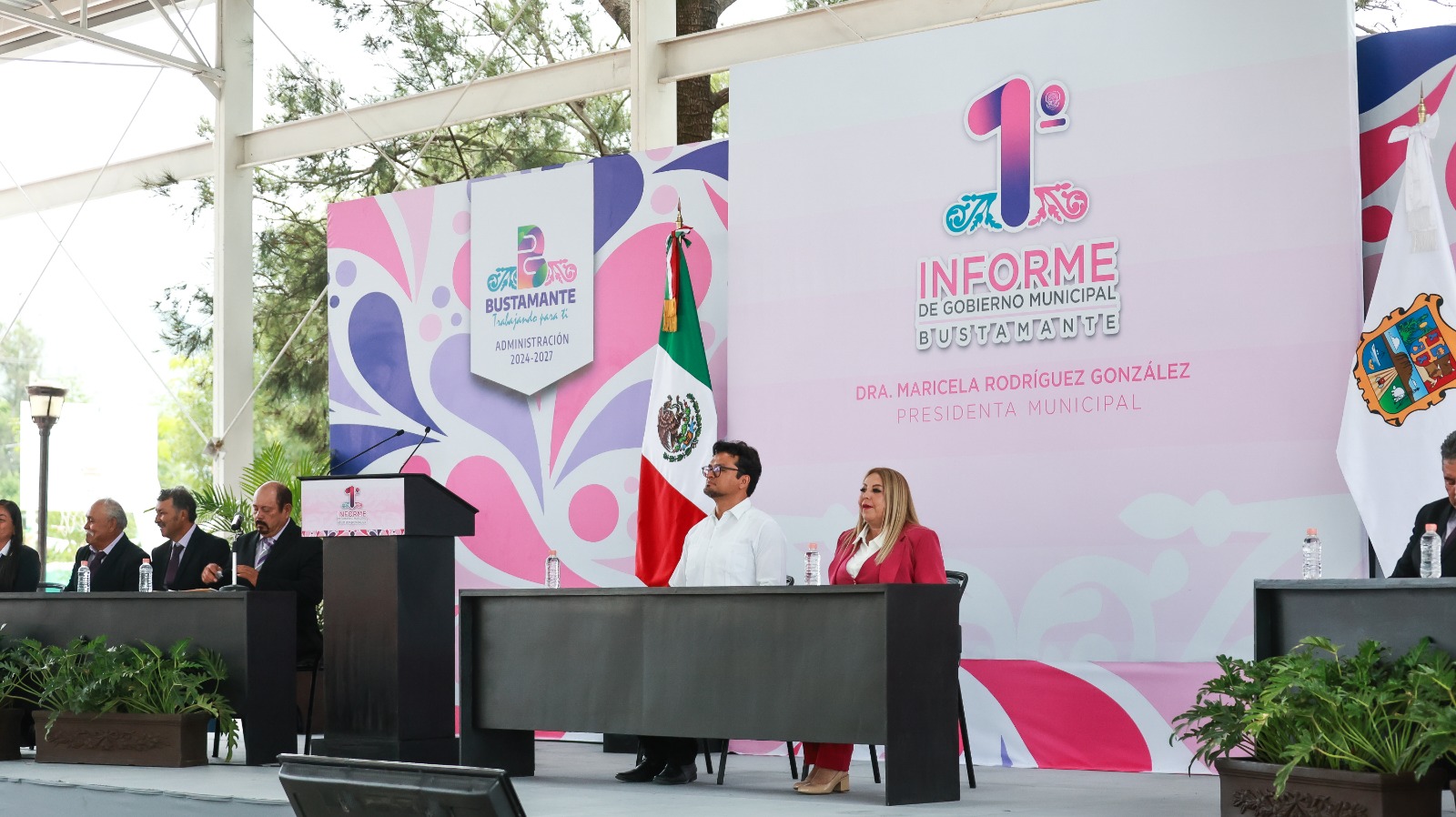 “Es un honor acudir a este acto en representación del gobernador Américo Villarreal Anaya, quien envía su reconocimiento y felicitación a la presidenta municipal, Maricela Rodríguez González, y a su equipo por el esfuerzo y compromiso demostrado en favor del bienestar y la prosperidad de Bustamante durante este primer año de gobierno”, expresó Walter Julián Ángel.
