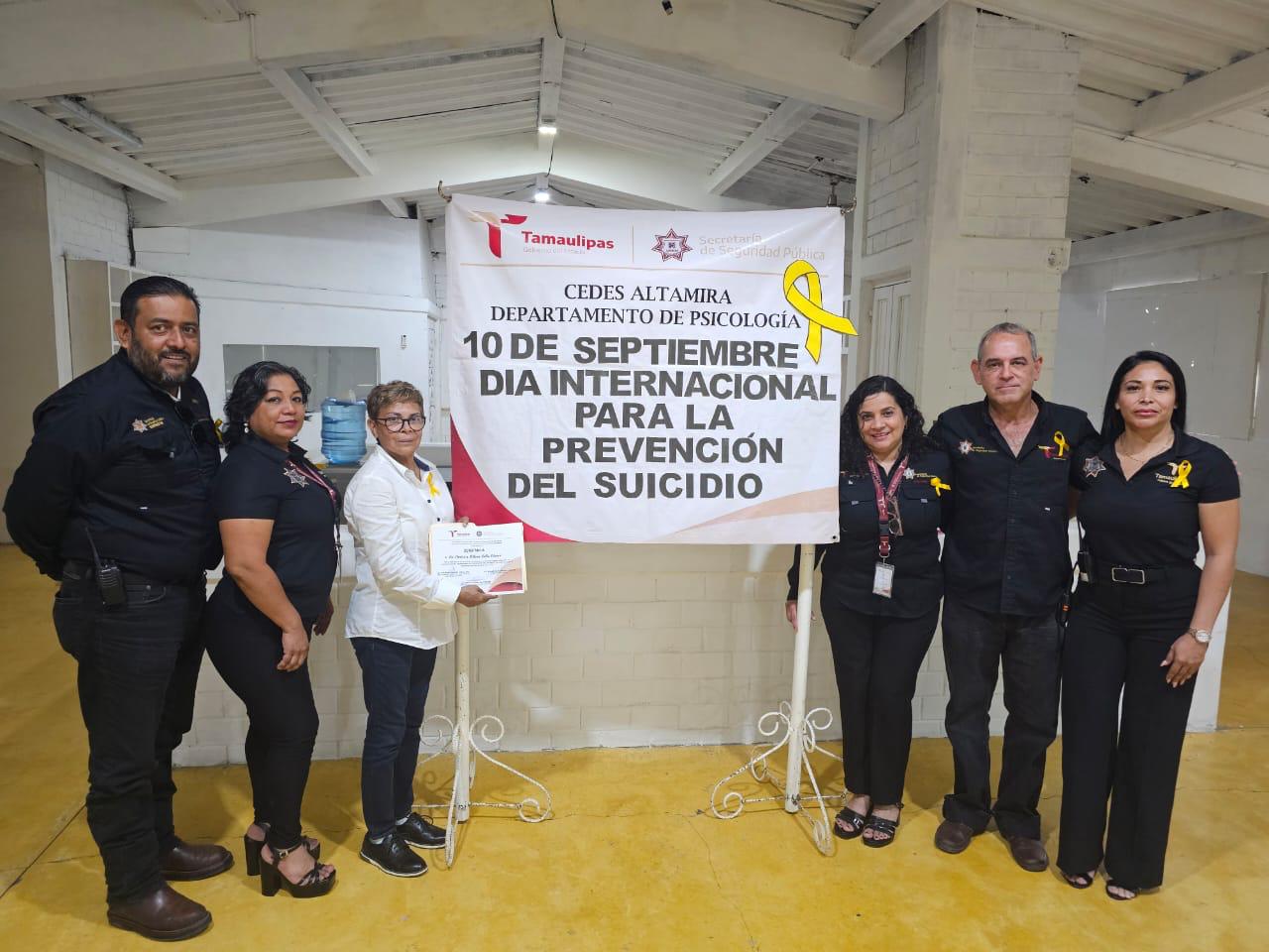 Altamira, Tamaulipas.- Dentro de las actividades realizadas por la Secretaría de Seguridad Pública de Tamaulipas (SSPT) durante el Día Mundial de la Prevención del Suicidio, conmemorado cada 10 de septiembre, en el Centro de Ejecución de Sanciones (CEDES) del municipio de Altamira llevó a cabo la plática “Suicidio: La Prevención Eres Tú”, dirigida a personas privadas de la libertad (PPLs) del área varonil.