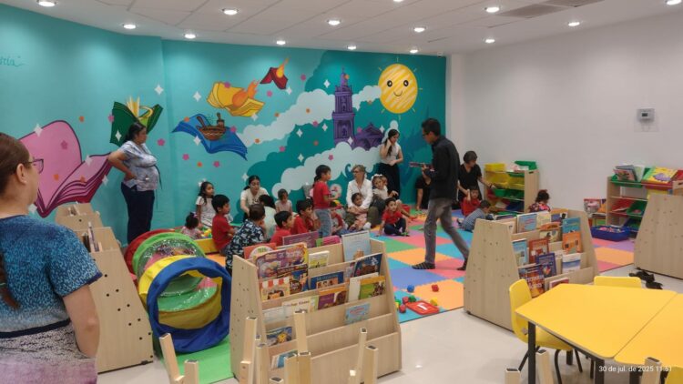 «Este es un espacio amigable, enfocado a la etapa de la primera infancia que abarca de 0 a 3 años e incluso hasta 6 años, donde las madres de familia desarrollan actividades lúdicas con sus hijos que les permiten fomentar el amor por la lectura a través del juego», dijo Marcos Rodríguez Leija, Coordinador de Bibliotecas.