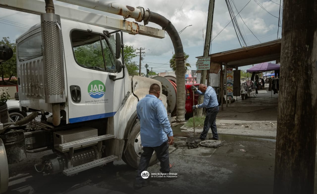H. Matamoros, Tamaulipas.- Como parte de los trabajos permanentes de mantenimiento a la infraestructura urbana, el Gobierno Municipal, presidido por el alcalde Beto Granados, a través del personal del área de vactor, llevó a cabo labores de limpieza en las líneas de drenaje sanitario del callejón 7, ubicado en la colonia Popular.