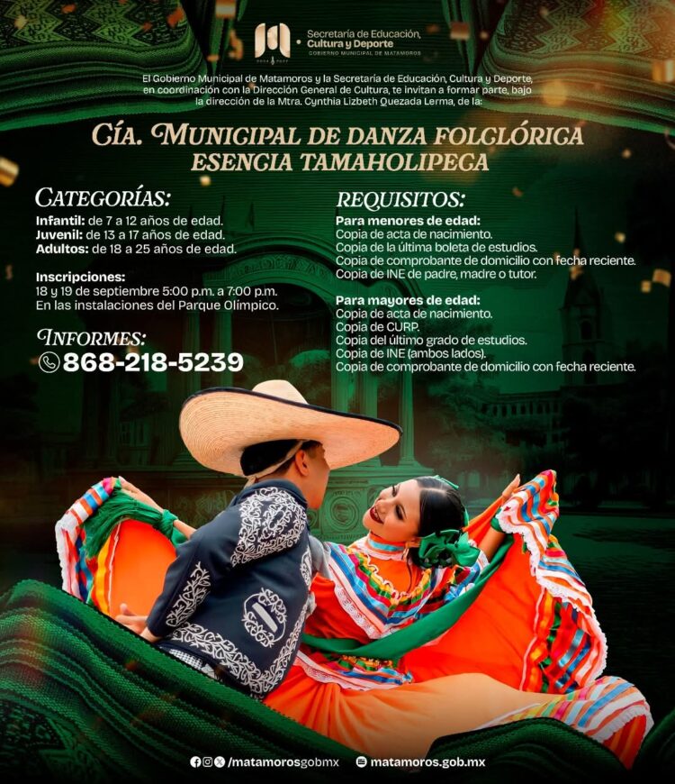 Ser parte de «Esencia Tamaulipeca» no solo significa aprender a bailar, sino también contribuir a la preservación de nuestras tradiciones y llevar con orgullo el espíritu de Matamoros a diferentes escenarios. Esta es una oportunidad única para formar parte activa del impulso cultural que promueve el gobierno de Beto Granados.