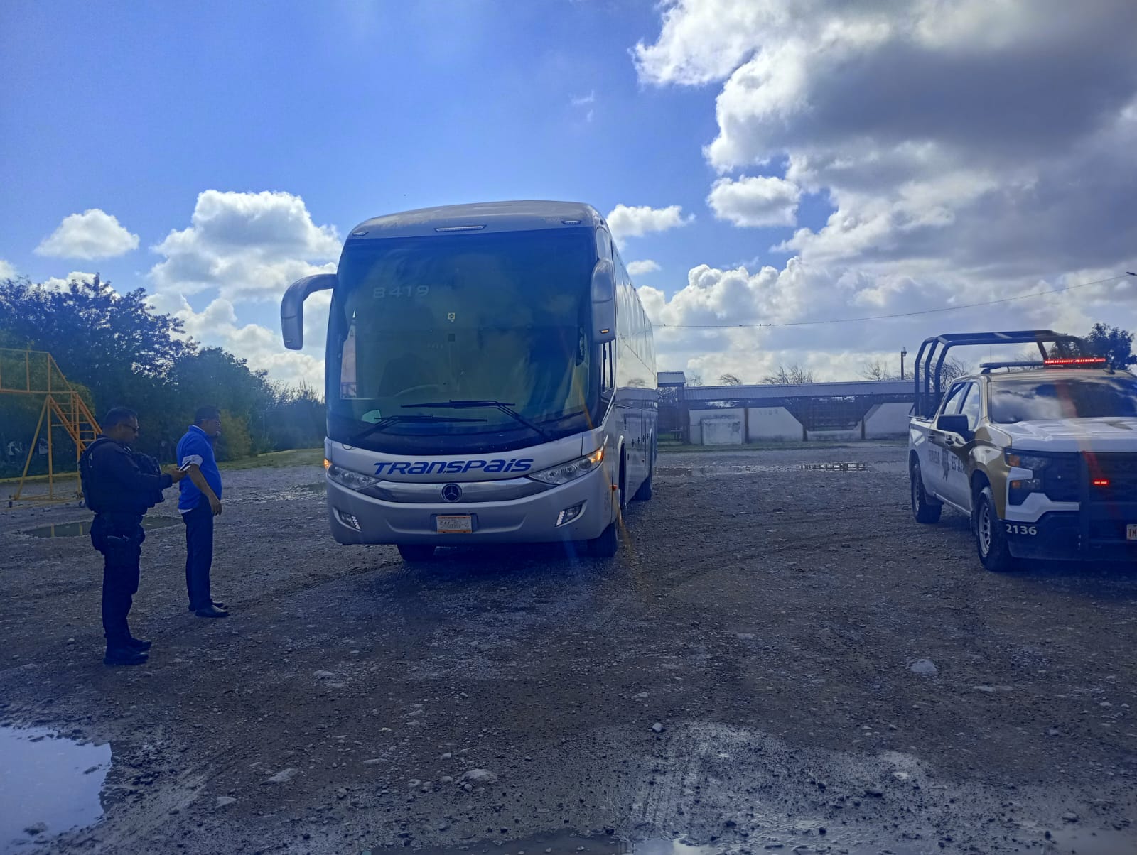 Tula, Tamaulipas.- Personal de la Guardia Estatal de Apoyo Carretero brindó auxilio a un autobús de pasajeros que se quedó varado sobre la Federal 101, a la altura del kilómetro 20, cerca de la Estación Fitosanitaria en Tula.