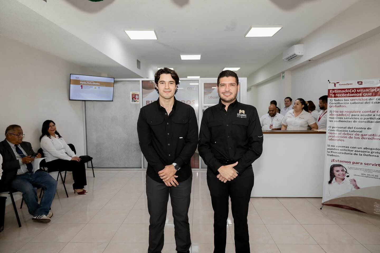 H. Matamoros, Tamaulipas.- El Secretario del Trabajo y Previsión Social de Tamaulipas, Luis Gerardo Illoldi Reyes, visitó Matamoros, donde acompañado por el alcalde Beto Granados recorrió las instalaciones del Centro de Conciliación Laboral de Tamaulipas.