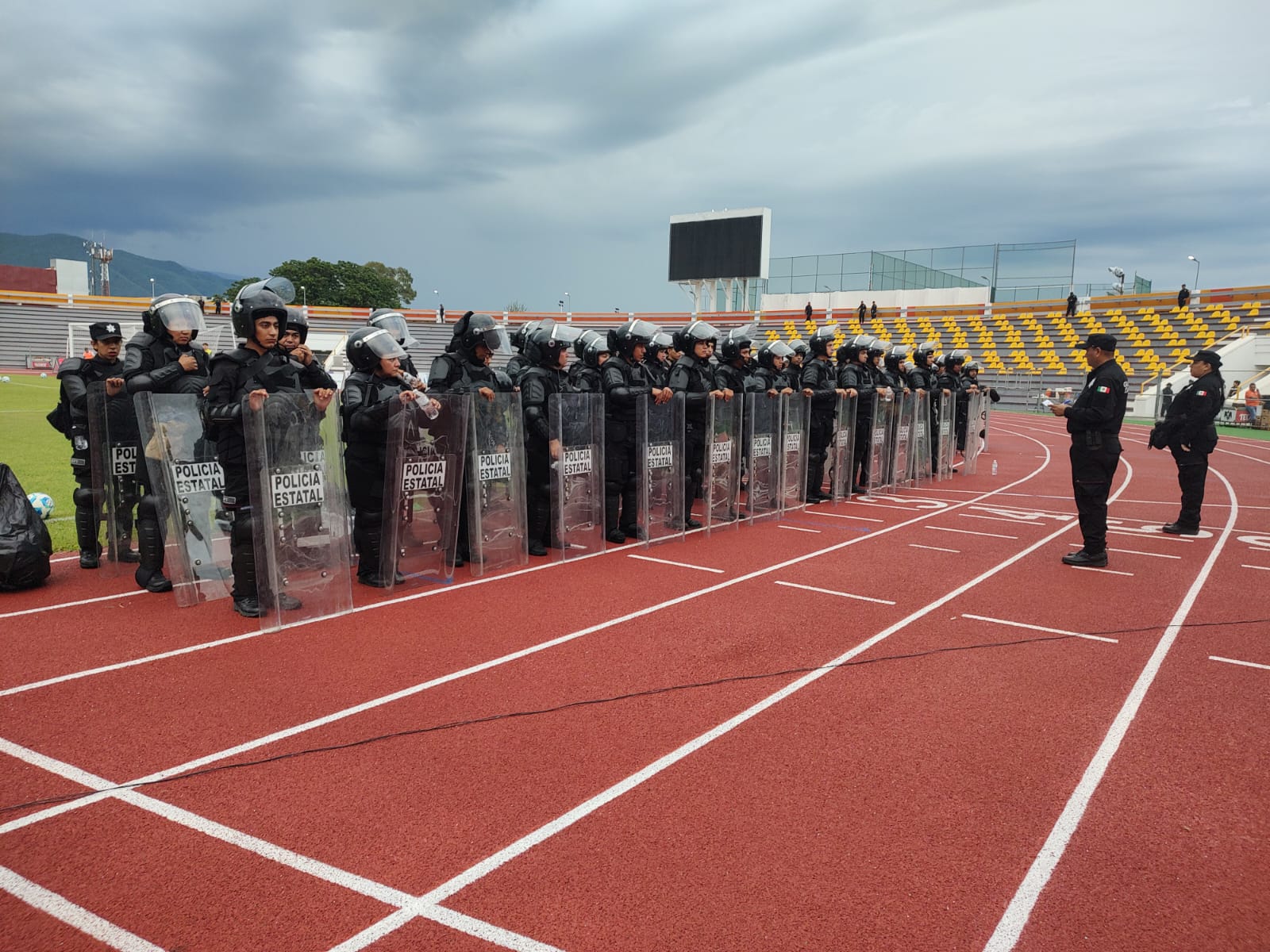 Ciudad Victoria, Tamaulipas.– Personal de la Policía Auxiliar de Victoria implementó un operativo de seguridad y vigilancia en el Estadio Marte R. Gómez, con motivo del encuentro de la Liga Expansión entre los equipos Correcaminos y Venados F.C.