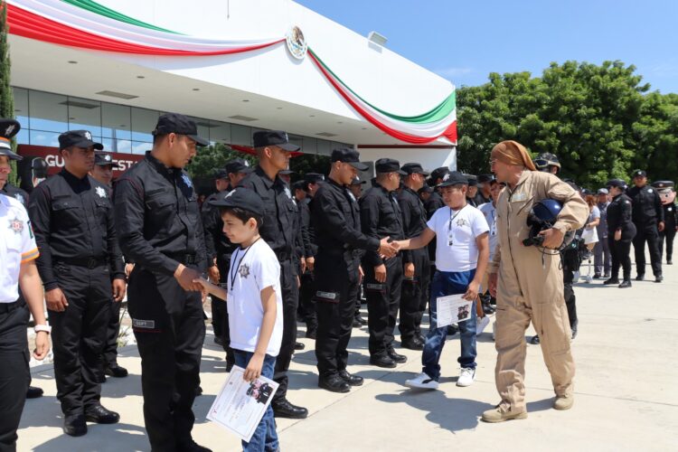 Tras la ceremonia oficial, se trasladaron al Centro de Convivencia Familiar (CECOFAM) donde convivieron con los caballos, jinetes, caninos y manejadores de la Dirección de Agrupamientos Policiales; así como las Fuerzas Especiales de la Guardia Estatal (FEGE), quienes les entregaron un reconocimiento como policía honorario, les mostraron parte del equipo táctico que utilizan e instalaron un espacio pinta caritas.
