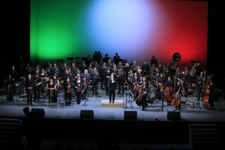 En la segunda parte del concierto se realizó una fusión única con la Orquesta Sinfónica de la Universidad Autónoma de Tamaulipas y la Banda de Guerra Monumental de la Coordinación Territorial Región Golfo de la GN.
