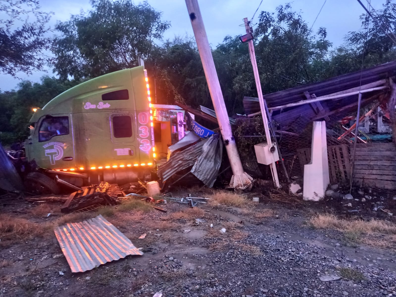 Las unidades participantes fueron un tractocamión de plataforma que transportaba estructuras metálicas, un vehículo sedan, un tractocamión y un camión.