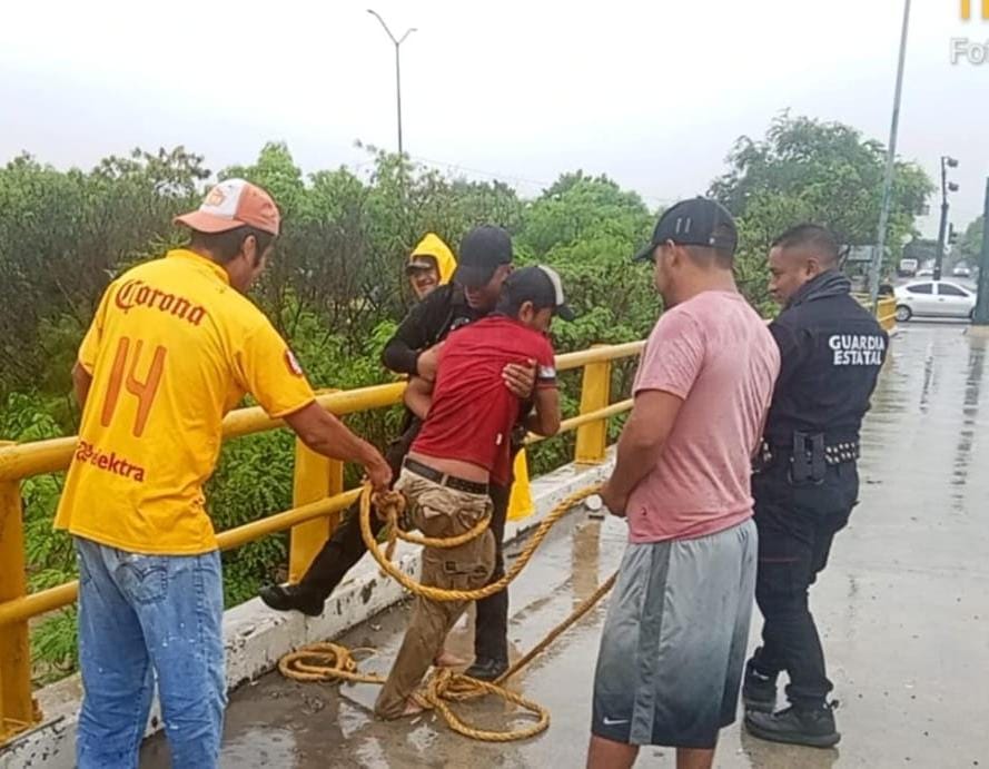 Al arribar al puente de la colonia Moderna, elementos de esta corporación visualizaron a la persona dentro del cauce del río agarrado de un árbol.