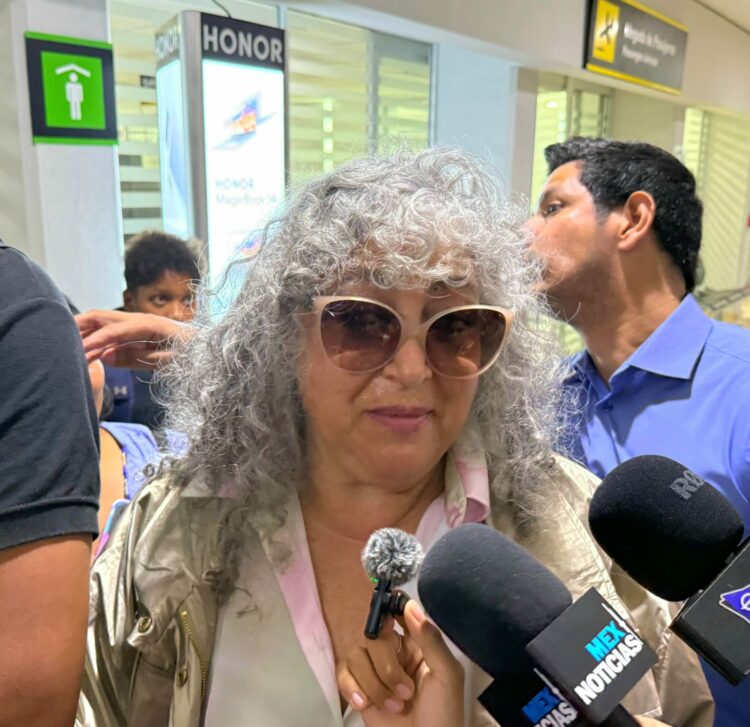 H. Matamoros, Tamaulipas.– La destacada cantante Amanda Miguel arribó este sábado al Aeropuerto Internacional de Matamoros, donde fue recibida con muestras de aprecio por parte de sus seguidores y representantes de los medios de comunicación. Su visita marca la antesala de la clausura del Festival Internacional de Otoño, en su edición número 33.