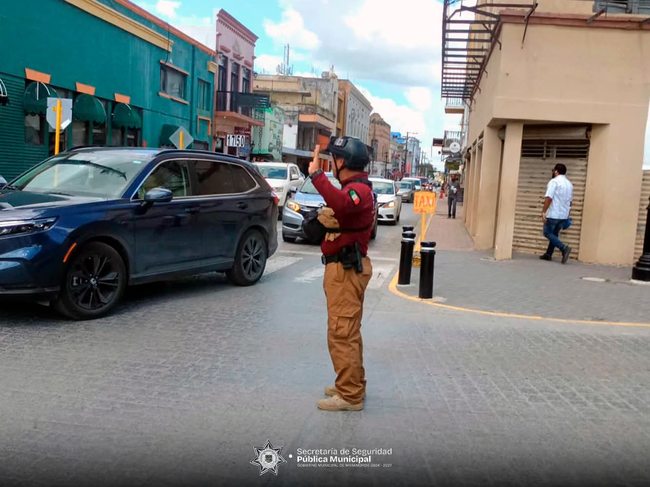 Elementos de Seguridad del Gobierno de Matamoros se encuentran desplegados en la zona para orientar a los conductores, mantener el orden vial y brindar apoyo a los peatones durante el desarrollo de las actividades.