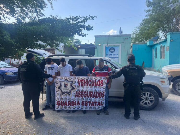 Reynosa, Tamaulipas.- En atención a un reporte del C5 personal de la Guardia Estatal arribó al Fraccionamiento Pirámides del municipio de Reynosa y realizó la detención en flagrancia de cuatro personas implicadas en la privación de la libertad de un ciudadano.