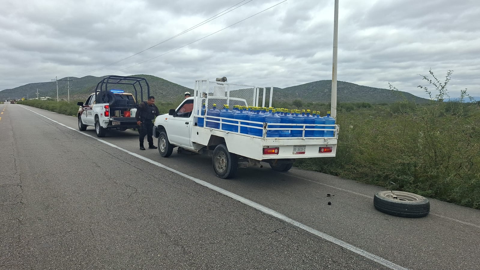 El conductor explicó que transportaba 60 garrafones de agua sobre la vía cuando se percató del desprendimiento del neumático delantero derecho, por lo cual, se orilló y se comunicó con el mecánico de la empresa para la cual trabaja.