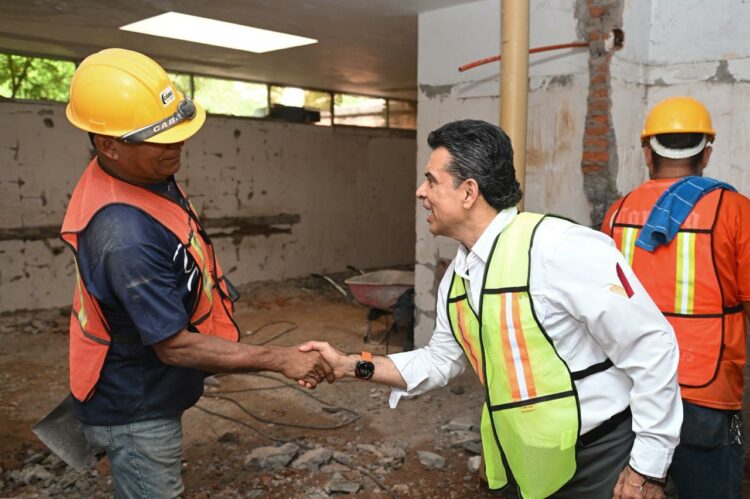 En gira de trabajo, el alcalde Eduardo Gattás Báez visitó este viernes el inmueble, donde junto al gerente José del Refugio Calderón y el secretario de Obras Públicas Eusebio Alfaro Reyna, realizó un recorrido de supervisión del avance de trabajos de la obra.
