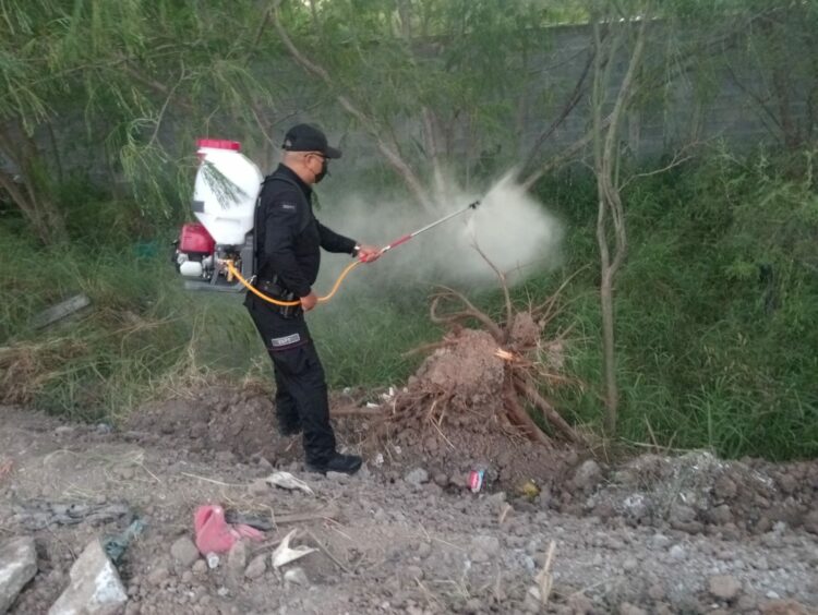 Los oficiales realizaron recorridos aleatorios sobre la orilla del canal del fraccionamiento, con la finalidad de prevenir incidentes y, al mismo tiempo, fumigar y reducir la maleza que puede favorecer la proliferación de fauna nociva y afectar la limpieza del área.