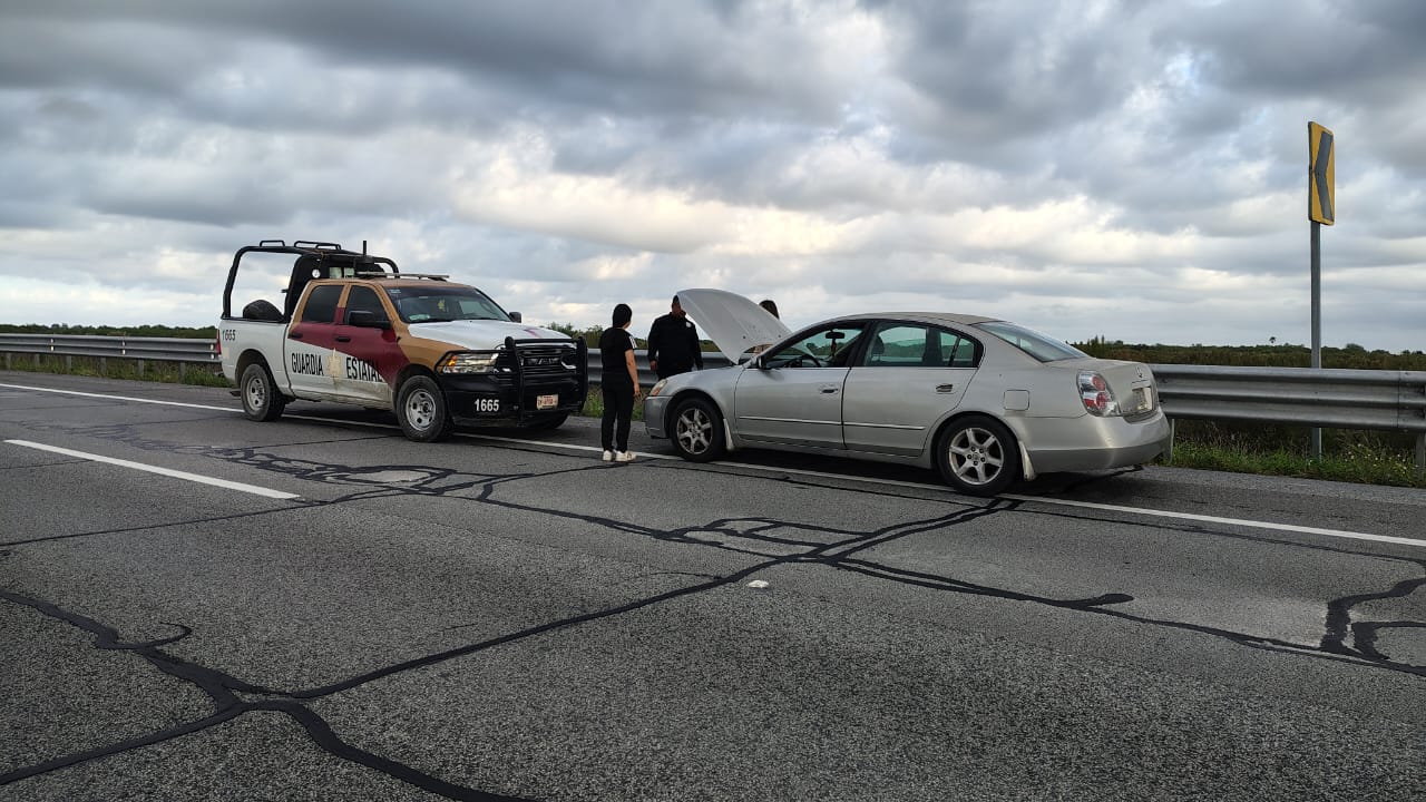Matamoros, Tamaulipas.- Personal de la Guardia Estatal de Apoyo Carretero brindó asistencia a una conductora cuyo vehículo presentó una falla mecánica sobre la carretera Matamoros–Reynosa, a la altura del kilómetro 47, en el municipio de Matamoros.
