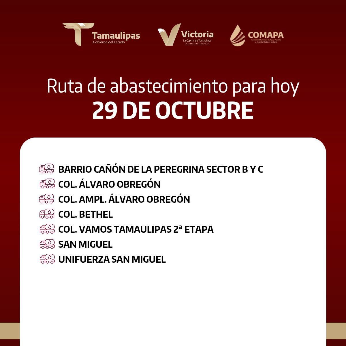 Este d铆a, el servicio de abastecimiento se realiza en: