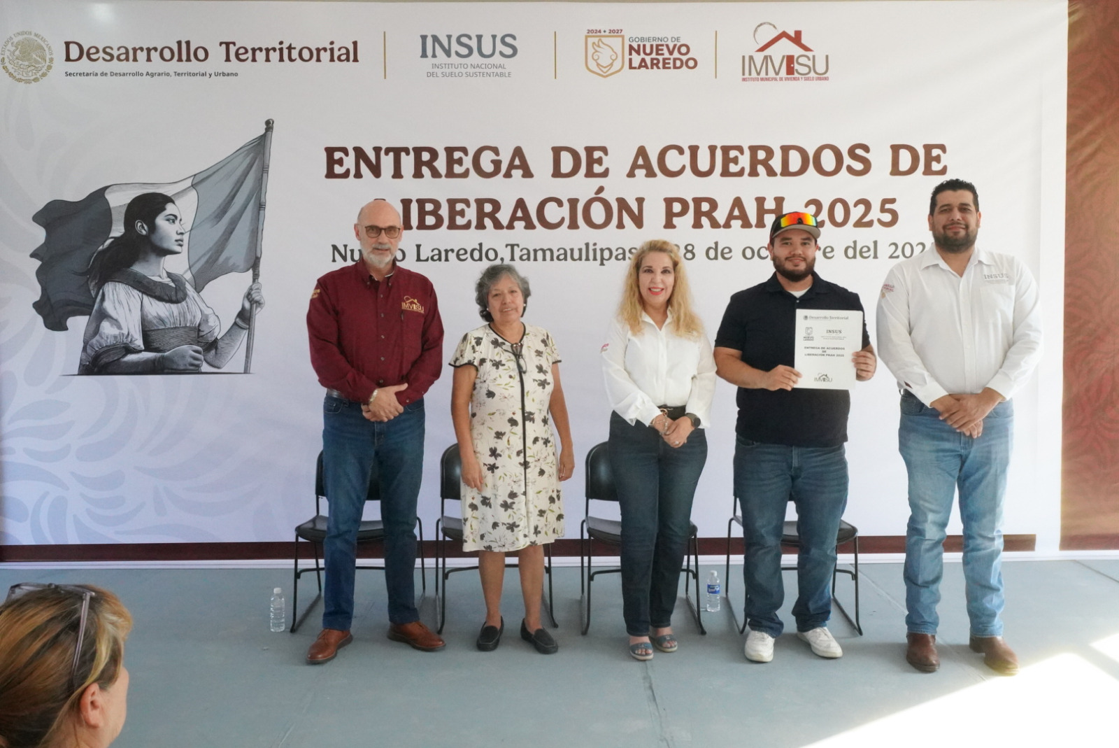 Gracias a la gestión y la buena sinergia con la federación, el Gobierno Municipal de Nuevo Laredo, facilitó la entrega de 100 Acuerdos de Liberación de Subsidio del Programa para Regularizar Asentamientos Humanos (PRAH 2025), que permitirán a igual número de familias iniciar el proceso de regularización de sus viviendas en la colonia Las Torres, segunda etapa.