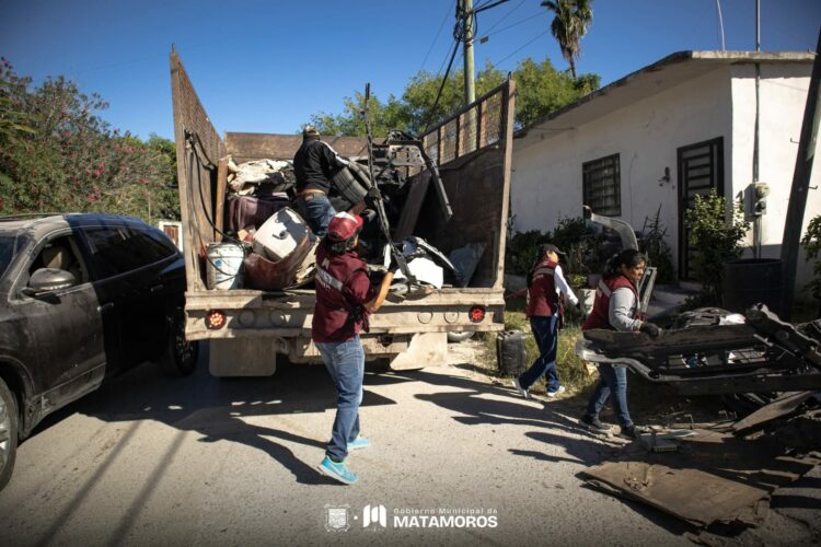 Matamoros, Tam.– La colonia Tecnológico se llenó de acción con la Jornada de Descacharrización organizada por el Gobierno Municipal que encabeza Beto Granados, donde camiones recolectores y personal de Bienestar Social junto a las y los vecinos para retirar muebles viejos, llantas y objetos en desuso que representaban un riesgo para la salud pública.