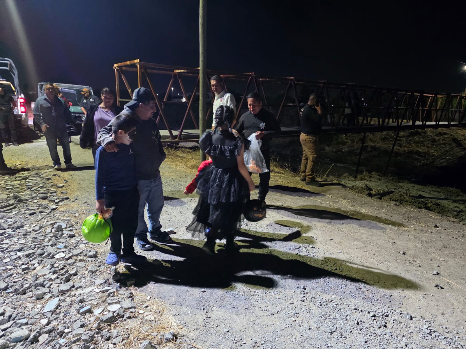 Matamoros, Tamaulipas.- Como parte de los programas de proximidad que lleva a cabo el personal de la Guardia Estatal, efectivos destacamentos en el municipio de Matamoros repartieron golosinas a menores que salieron a pedir Halloween.