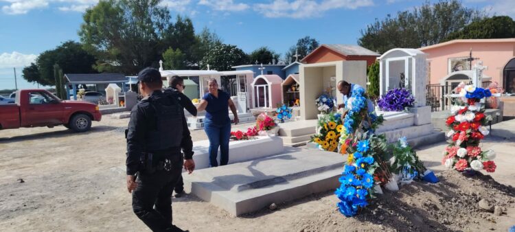 Durante la jornada, los elementos mantuvieron contacto con los visitantes que acudieron a limpiar y decorar las tumbas de sus familiares, quienes expresaron agradecimiento por la presencia policial y la confianza brindada durante su estancia en el lugar.