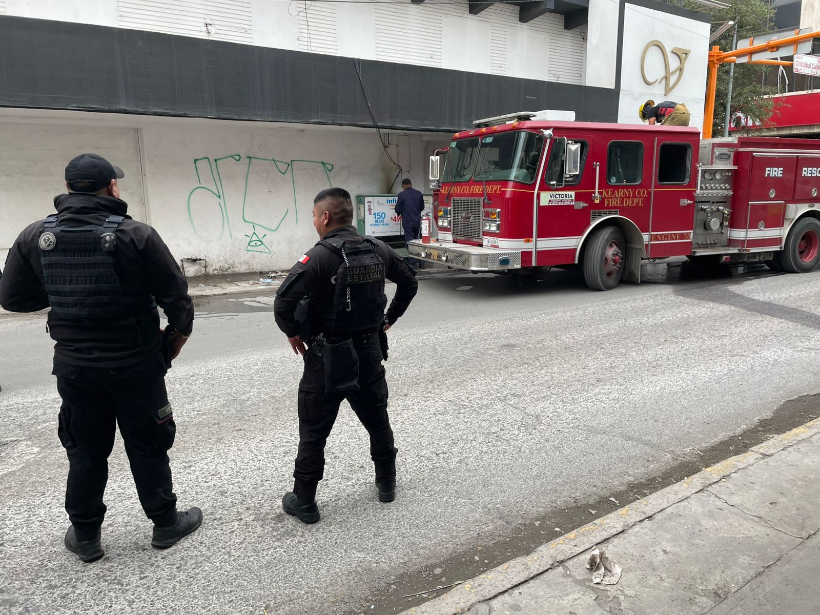 Ciudad Victoria, Tamaulipas.- Con el propósito de salvaguardar la integridad de la ciudadanía, personal de la Guardia Estatal en Ciudad Victoria, utilizó el extintor de una patrulla para sofocar un incendio registrado en una empresa de telecomunicaciones ubicada en la Zona Centro.