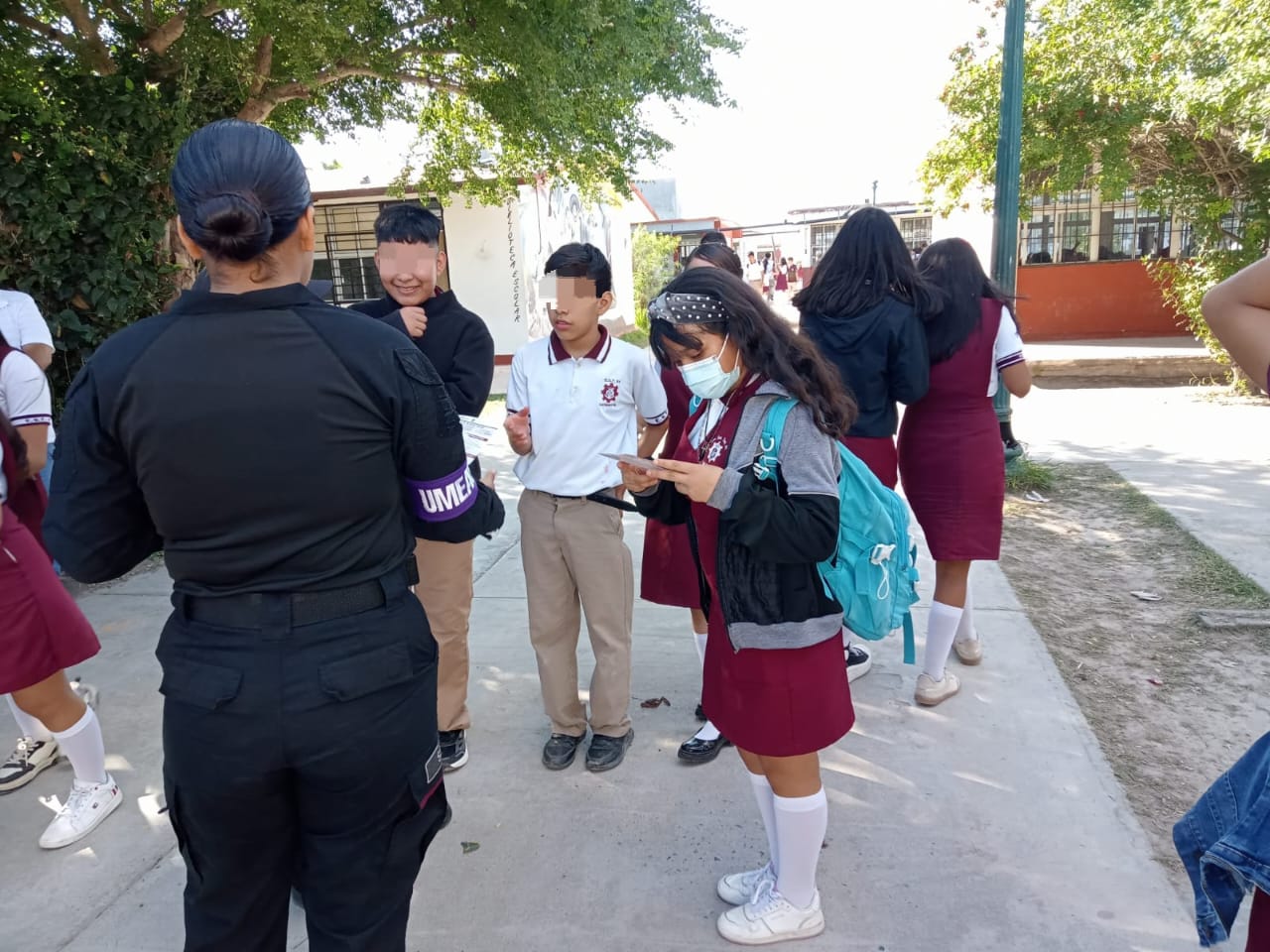 Matamoros, Tamaulipas.- Con el objetivo de fortalecer la cultura de la prevención y promover entornos escolares más seguros, la Guardia Estatal de Género llevó a cabo jornadas culturales y de seguridad en escuelas de Matamoros, donde participaron más de 600 alumnos de nivel básico y medio superior.