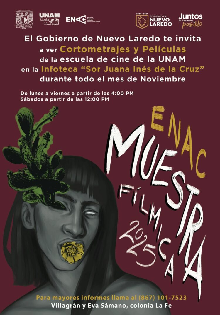 La Infoteca «Sor Juana Inés de la Cruz» de Nuevo Laredo, Tamaulipas, fue seleccionada como sede nacional para la proyección de cortometrajes y películas de la Muestra Fílmica 2025 de la Escuela Nacional de Artes Cinematográficas (ENAC).