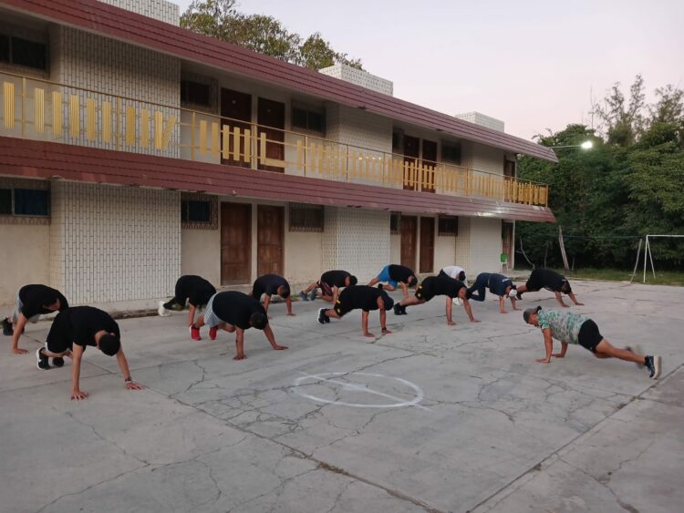 González, Tamaulipas.- Atendiendo el Programa Permanente de Acondicionamiento Físico impulsado por la Secretaría de Seguridad Pública de Tamaulipas (SSPT) personal de la Guardia Estatal perteneciente a la coordinación municipal González realiza diariamente ejercicios que mejoran su salud y capacidad de respuesta en su labor diaria al servicio de la ciudadanía.