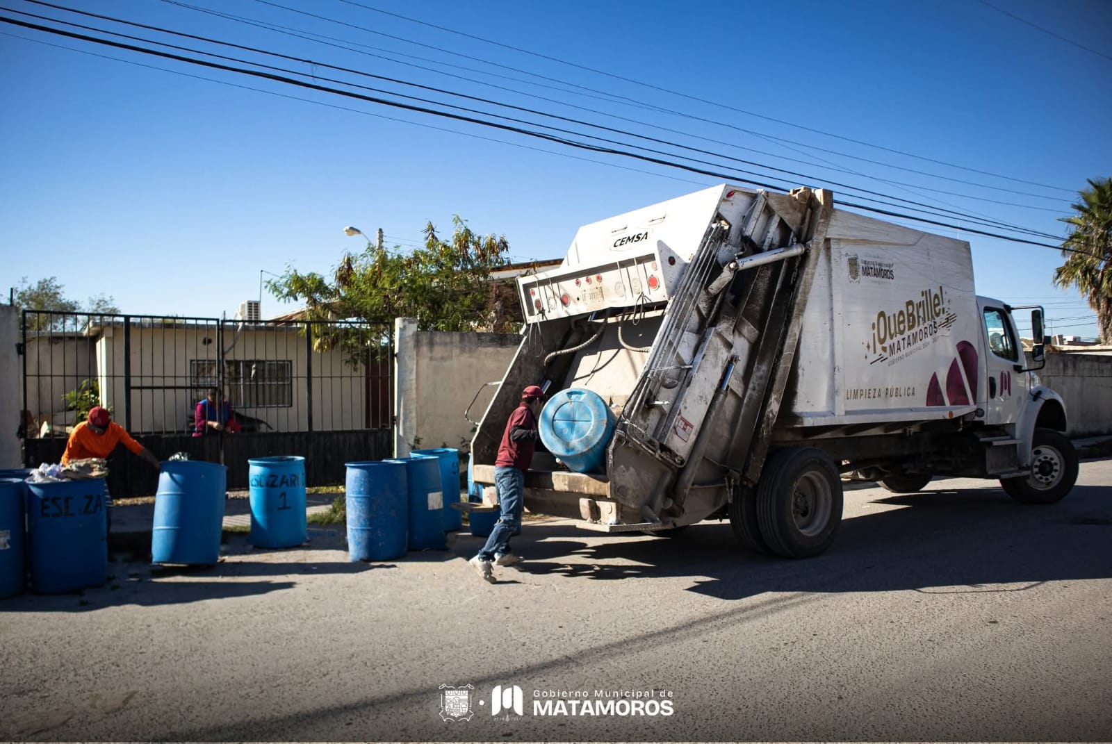 Matamoros, Tam.- El Gobierno de Matamoros, que encabeza Beto Granados, a través de la Dirección de Limpieza Pública, reforzó este viernes las acciones de mantenimiento y recolección de desechos en diversos sectores de la ciudad, con el propósito de mantener en óptimas condiciones las calles, avenidas y espacios comunes.