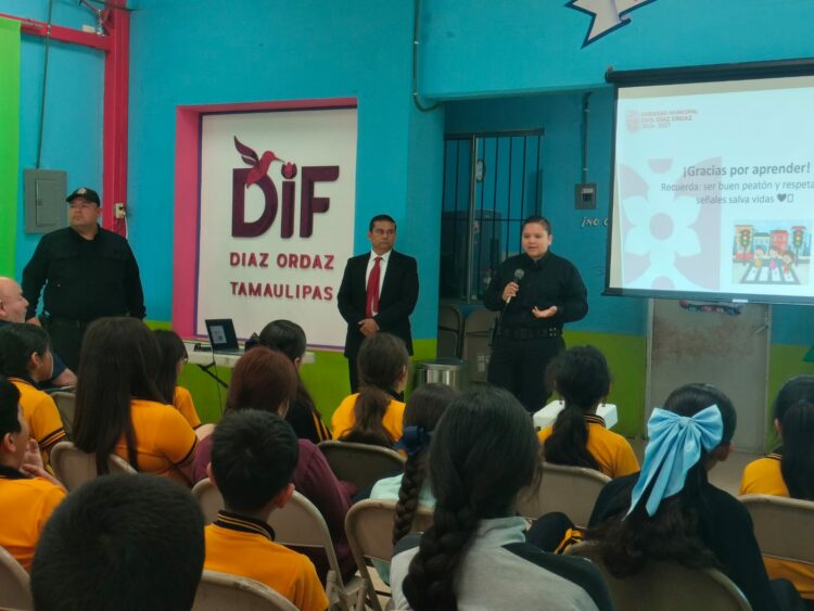 Gustavo Díaz Ordaz, Tamaulipas.- Dentro de las acciones para transformar la cultura vial en Tamaulipas, disminuir accidentes y reforzar la seguridad en carreteras, personal de la Guardia Estatal lleva a cabo pláticas informativas en escuelas del municipio de Gustavo Díaz Ordaz.