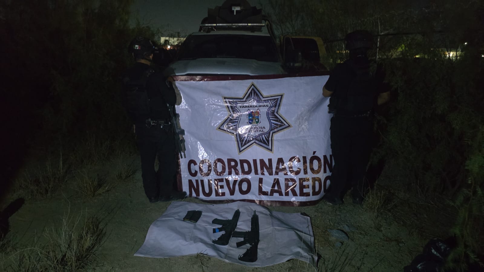 Nuevo Laredo, Tamaulipas.- En atención a un reporte ciudadano sobre personas con actividades sospechosas en el Fraccionamiento Los Fresnos, personal de la Guardia Estatal en Nuevo Laredo aseguró armamento en este sector.