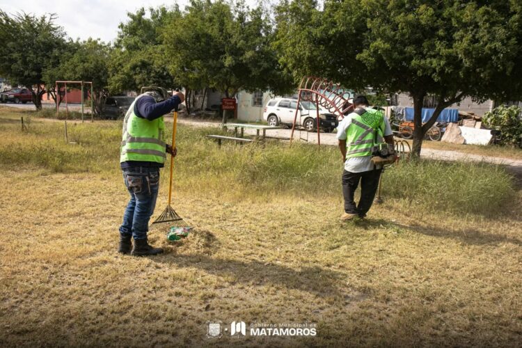 Matamoros, Tam.- El Gobierno de Beto Granados llevó a cabo labores de limpieza y mantenimiento en el área verde de la colonia Lucio Blanco, a través de la cuadrilla Renace, con el propósito de conservar en óptimas condiciones este espacio público utilizado diariamente por niñas, niños y familias de la zona.