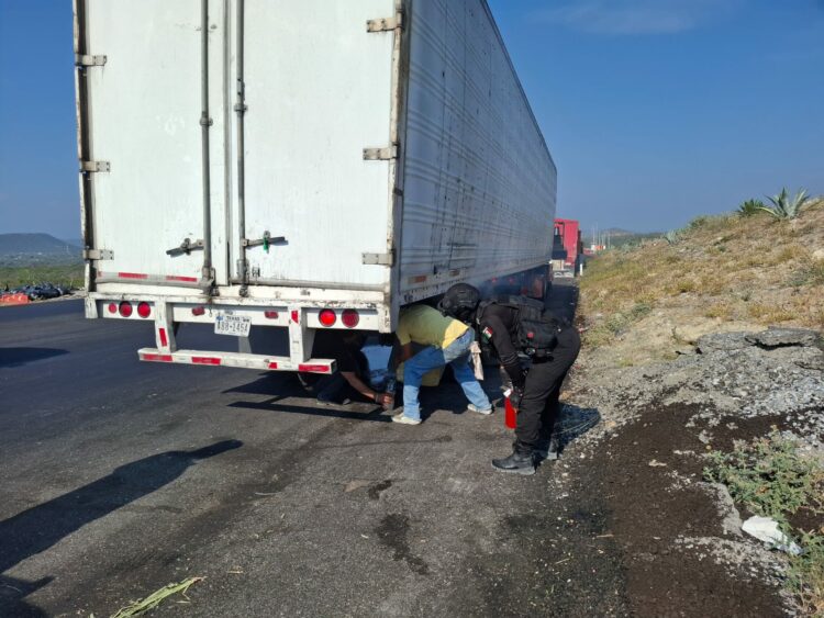 Jaumave, Tamaulipas.- Al realizar recorridos de seguridad y vigilancia sobre la Carretera Estatal 126 Rumbo Nuevo, personal de la Guardia Estatal de Apoyo Carretero comisionado a la Estación Segura Jaumave brindó asistencia al operador de un tractocamión que presentó una falla mecánica en el kilómetro 36.