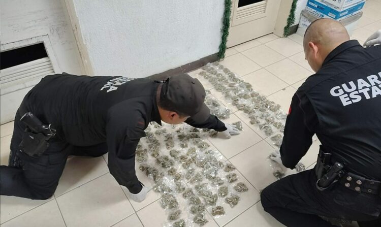 En el lugar donde fueron visualizados por primera vez, efectivos de esta corporación encontraron una bolsa negra que en su interior contenía 353 bolsas transparentes con una hierba con características de la marihuana, indicios que fueron puestos a disposición de la Fiscalía General de Justicia del Estado de Tamaulipas (FGJT).