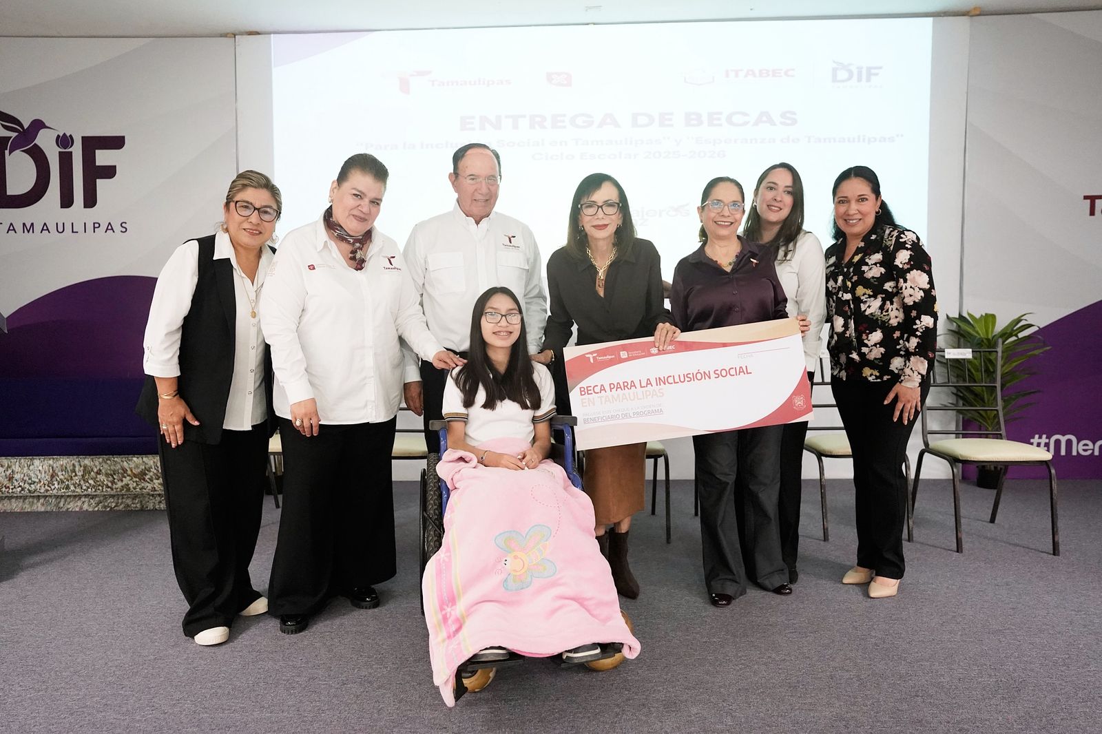 Ciudad Victoria, Tamaulipas.– Con el compromiso de garantizar el acceso y permanencia en el sistema educativo estatal, el DIF Tamaulipas, que preside la doctora María de Villarreal, entregó las becas “Esperanza de Tamaulipas” y “Para la Inclusión Social en Tamaulipas”, dirigidas a niñas, niños y jóvenes de atención prioritaria.