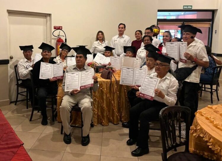 Altamira, Tamaulipas.– Como resultado de la suma de voluntades entre el Instituto Tamaulipeco de Educación para Adultos (ITEA) y el Sistema DIF Altamira, se entregaron certificados de educación básica a adultos mayores que laboran como empacadores voluntarios en una tienda de este municipio.