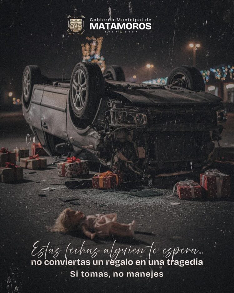 H. Matamoros, Tamaulipas.- El gobierno de Beto Granados emitió un firme mensaje de concientización para la ciudadanía, exhortando a evitar conducir bajo los efectos del alcohol durante las celebraciones navideñas. La administración municipal recordó que estas fechas representan un tiempo para reencontrarse, disfrutar en familia y celebrar con responsabilidad, reforzando así el compromiso de que Matamoros avanza hacia una cultura de prevención.