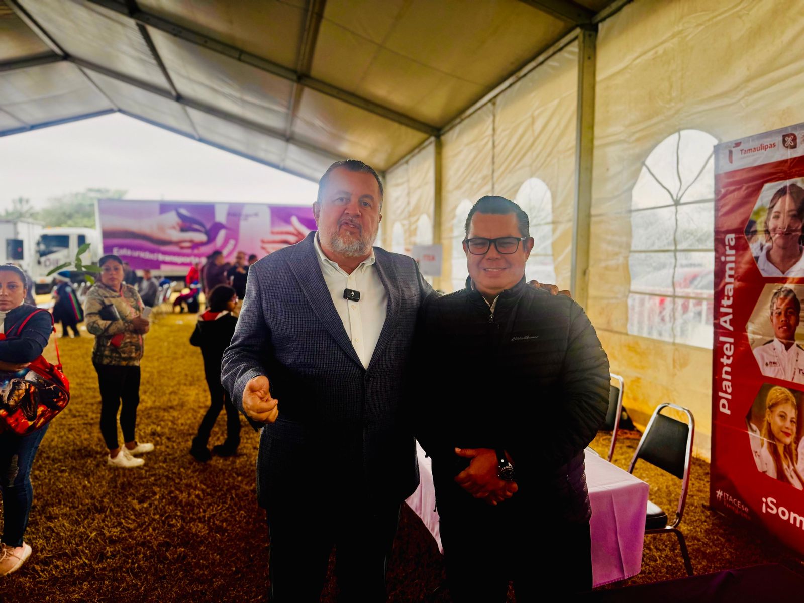 El titular del ITIFE, Sergio Oliverio Castillo Sagástegui, en diálogo con el director del ITACE Altamira, Rodolfo Alamilla Santamaría, al coincidir recientemente en un evento donde conversaron acerca del progreso e inversión destinada al plantel.