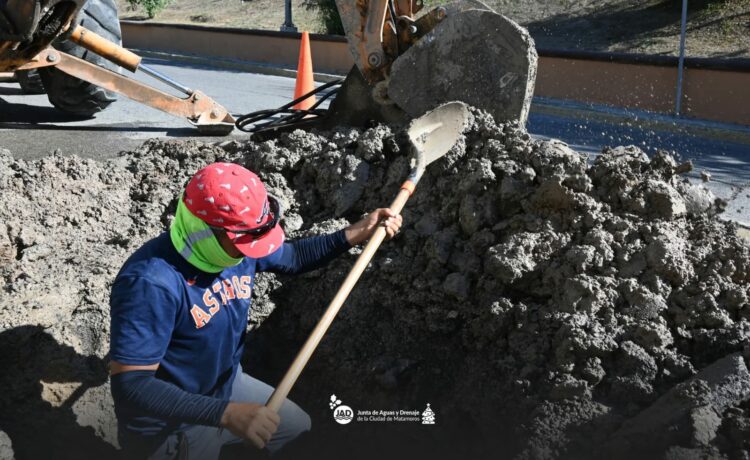 H. Matamoros, Tamaulipas.- El alcalde Beto Granados giró instrucciones para supervisar que las acciones de mantenimiento hidráulico avancen de manera continua en la ciudad; como parte de este esfuerzo, personal de cuadrillas de la Junta de Aguas y Drenaje realizó la reparación de una fuga de agua en la colonia Jardín, sobre la Avenida Tamaulipas.