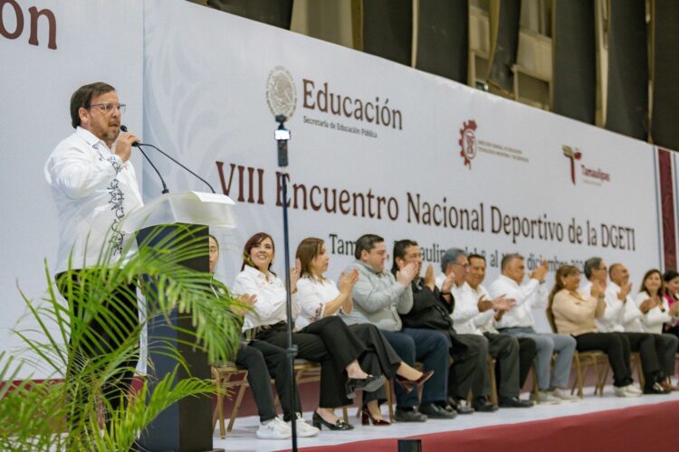 Tampico, Tamaulipas.– Con la participación de más de tres mil estudiantes de los 32 estados de la República, Miguel Ángel Valdez García, secretario de Educación de Tamaulipas, en representación del gobernador Américo Villarreal Anaya, inauguró el VIII Encuentro Nacional Deportivo DGETI 2025.