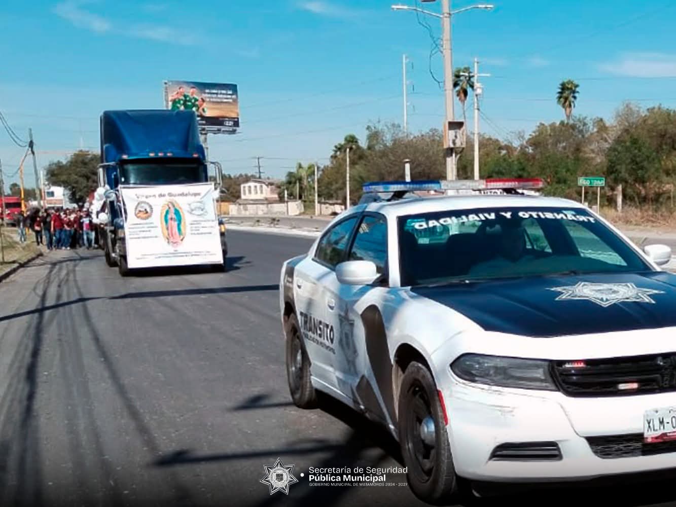 Matamoros, Tam.- El Gobierno de Beto Granados, a través de la Dirección de Tránsito y Vialidad, continúa brindando escolta y apoyo vial a las diversas peregrinaciones religiosas que se realizan en la ciudad durante esta temporada, en las que participan instituciones, sindicatos, escuelas y colonias. Estas acciones tienen como objetivo garantizar desplazamientos ordenados, fluidos y seguros para todas las personas involucradas.