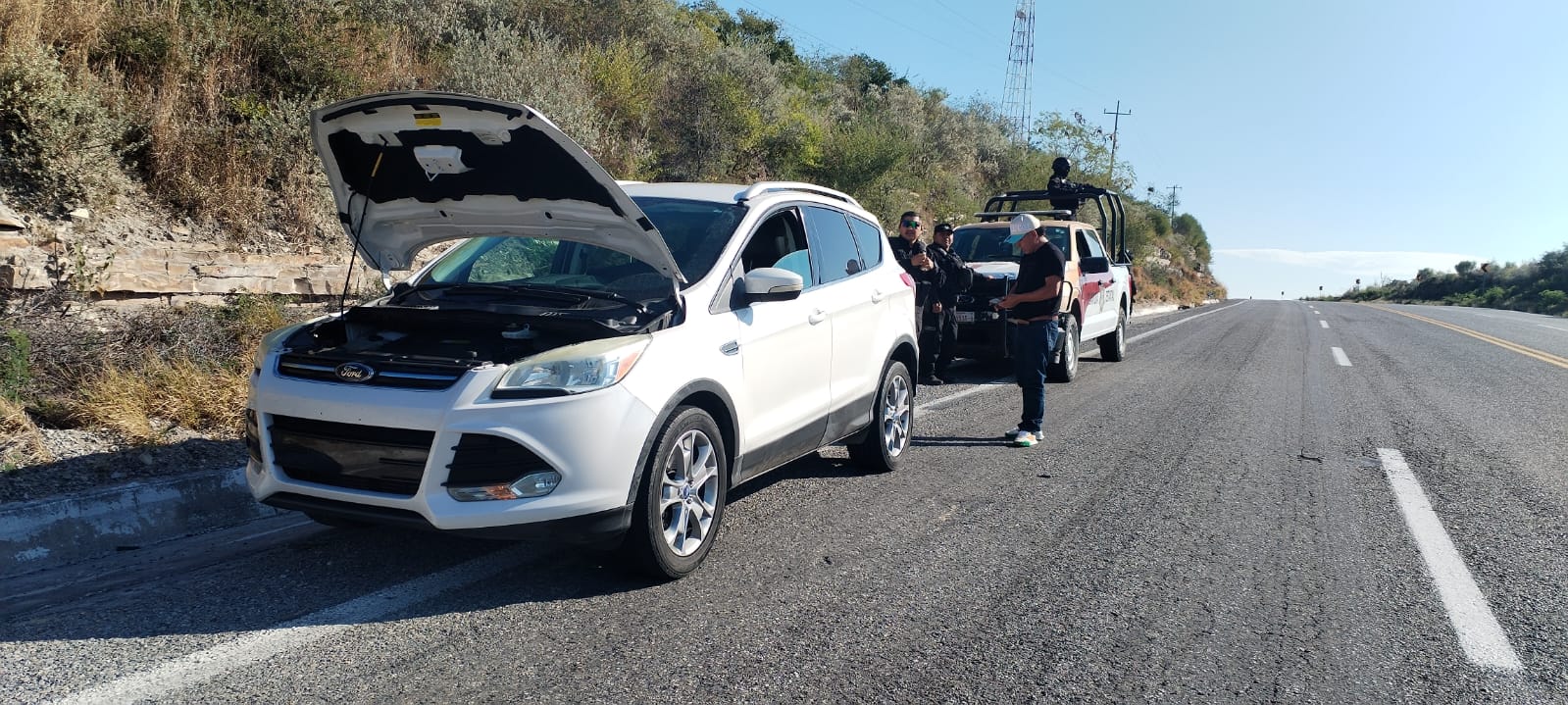 El conductor explicó que su vehículo, una camioneta Ford Escape color blanco, presentaba sobrecalentamiento del motor y una falla mecánica que le impedía continuar su trayecto.